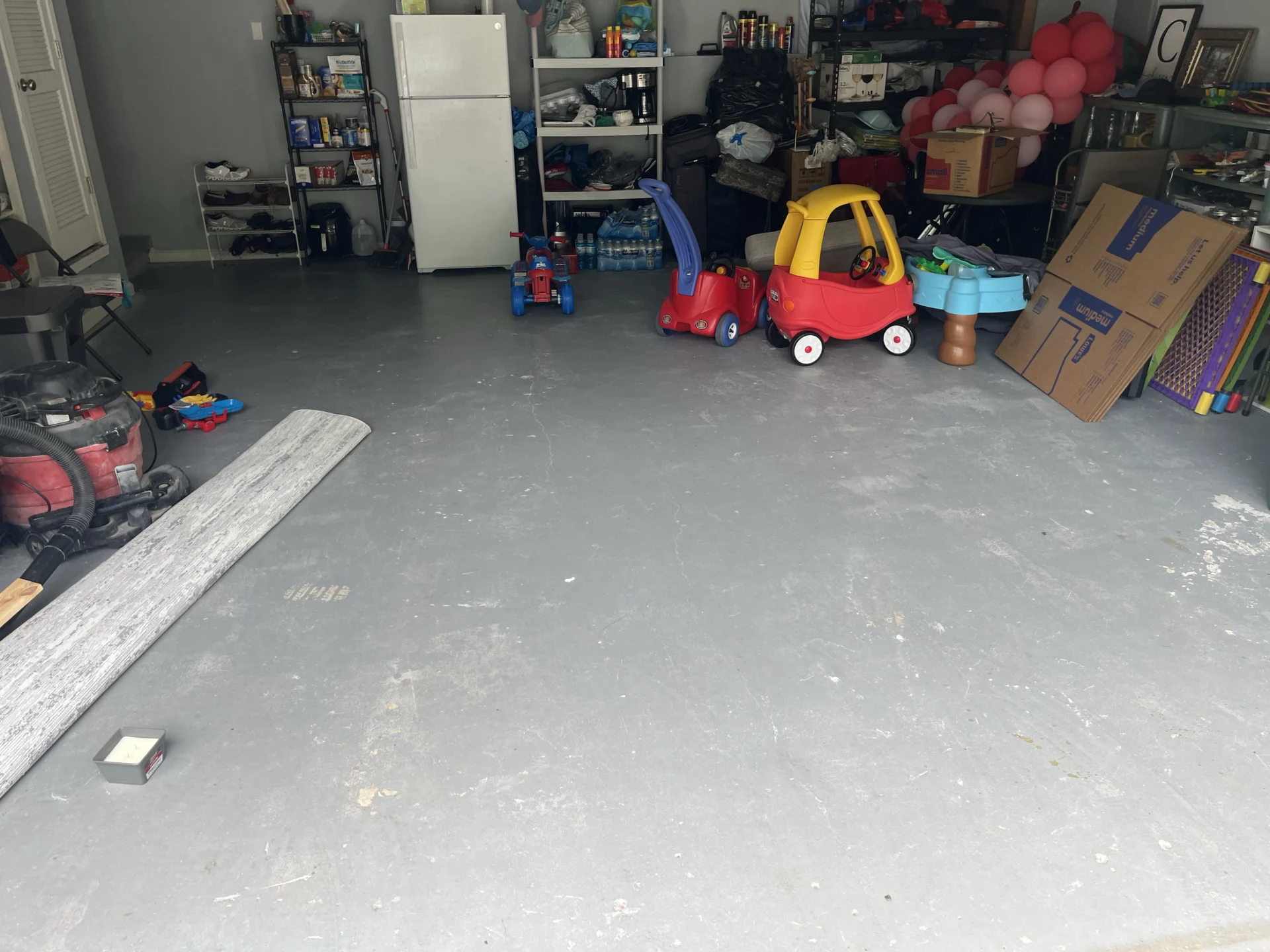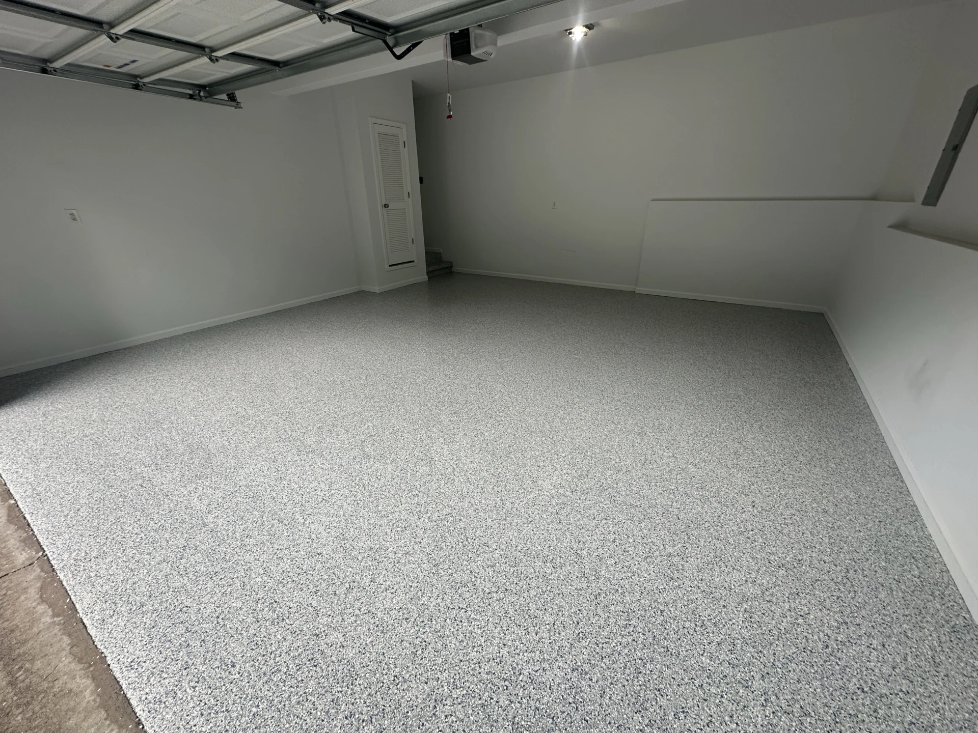 The client uses their garage for much more than just parking. Like many in North Atlanta, this space doubles as a home gym, storage area, and entry point into the home. The new floor now provides:
